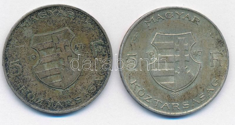 1947. 5Ft Ag "Kossuth" (2x) T:VF,F patina Adamo F8.1