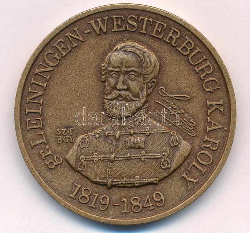 Description: Bognár György (1944-) / Szabó Tamás (1952-) 1994. "MÉE Gyöngyösi Csoport - Aradi Vértanúk / gr. Leiningen-Westerburg Károly" bronz emlékérem (42,5mm) T:UNC Adamo GS13