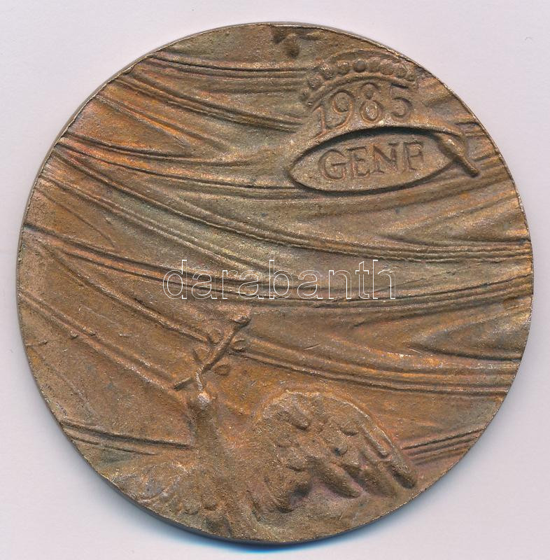 Rajki László (1939- ) 1985. "1985 GENF" kétoldalas bronz emlékérem (67mm) T:AU patina