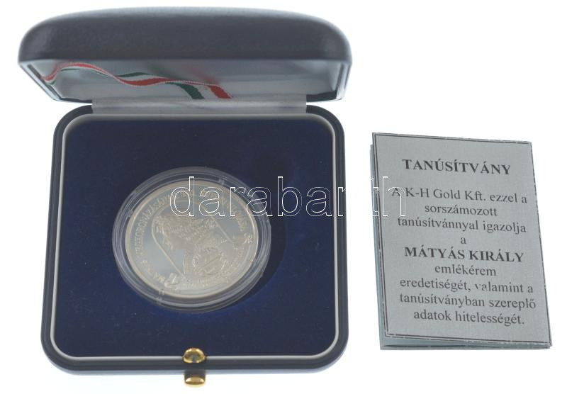 Szabó Géza (1939-) 2008. "Mátyás megkoronázásának 550. évfordulójára" Ag sorszámozott "152" emlékérem tanúsítvánnyal, dísztokban (20,78g/0.999/35mm) T:PP