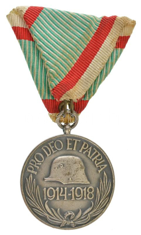 Hungary 1929. "Hungarian Commemorative War Medal with swords and a helmet" silver plated bronze decoration on ribbon, with "Bronze" hallmark on the edge C:XF slightly worn silver plating