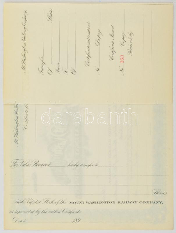 Amerikai Egyesült Államok ~1890. "Washington-hegy Vasút Társaság&... https://www.darabanth.com/en/451-Online-auction/451.0/Numismatics/Shares-and-Tickets~1500005/Amerikai-Egyesult-Allamok-7E1890-Washington-hegy-Vasut-Tarsasag-kitoltetlen-reszvenyelisme~II2999051