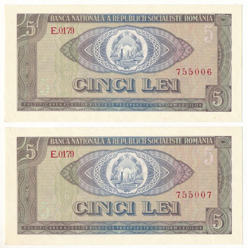 Románia 1966. 5L (2x) sorszámkövetők T:UNC,AU Romania 1966. 5 Lei (2x) sequential serials C:UNC,AU