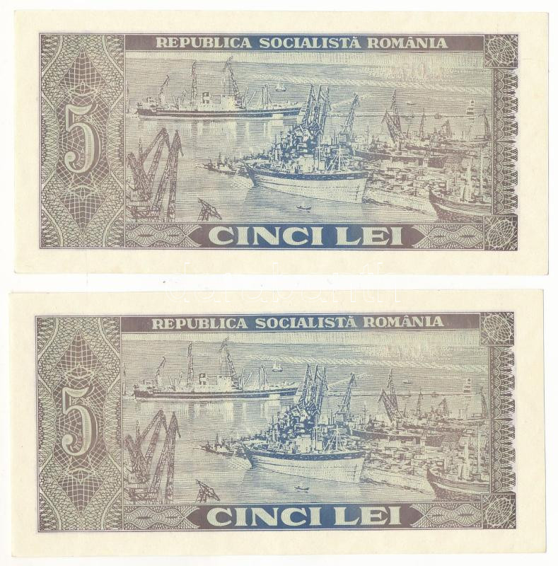 Románia 1966. 5L (2x) sorszámkövetők T:UNC,AU Romania 1966. 5 Lei (2x)...