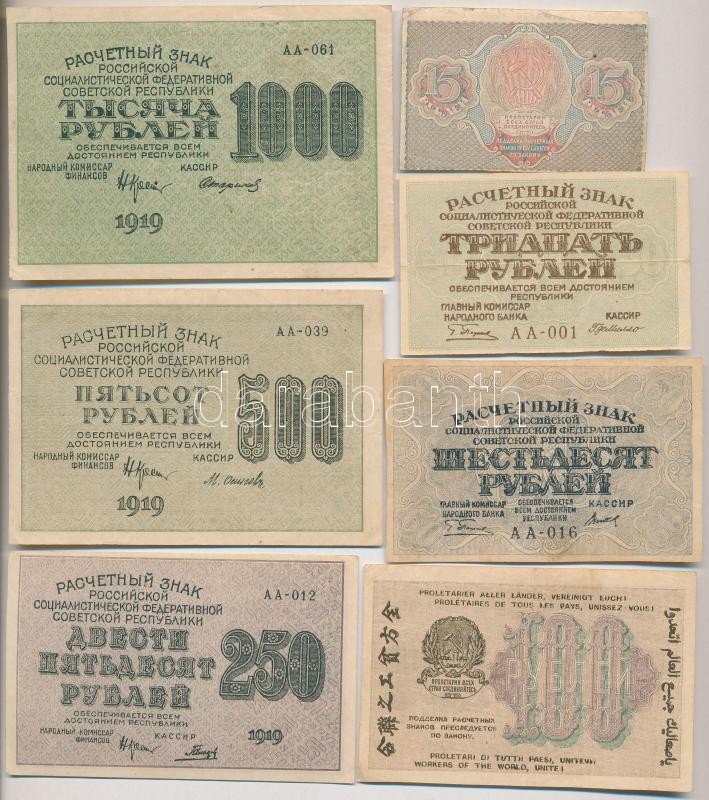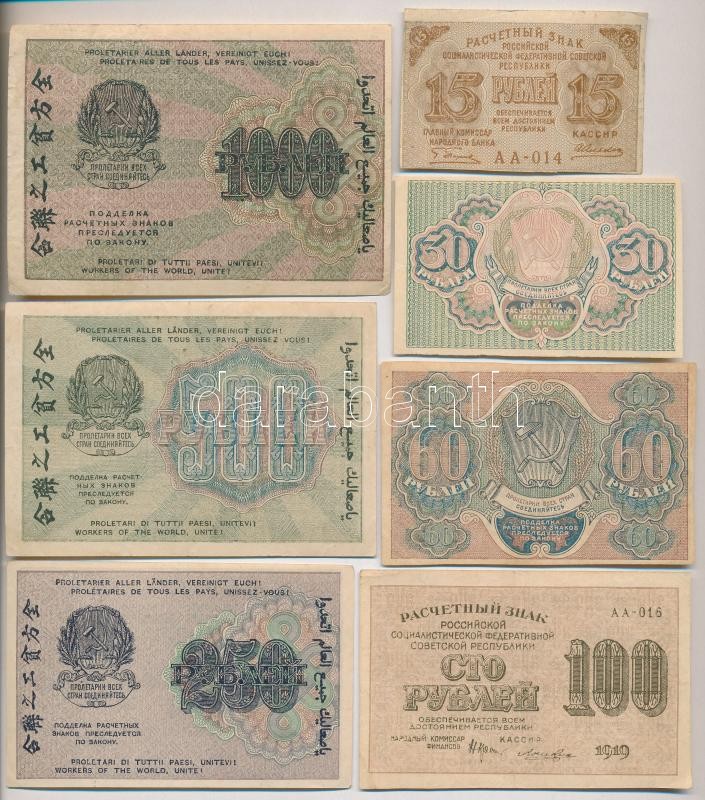 Szocialista Szövetségi Szovjet Köztársaság 1920. (1919) 15R + 30R + 60R + 100R + 250R + 500R + 1000R T:III tűlyuk