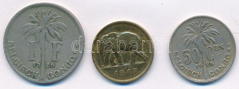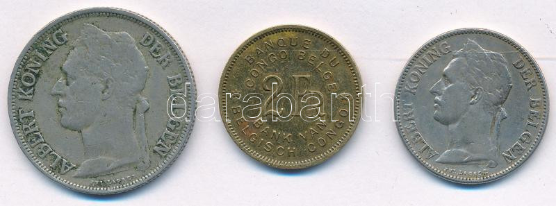 Belga-Kongó 1926. 50c Cu-Ni "I. Albert" + 1Fr Cu-Ni "I. Albert" + 1947. 2Fr T:XF-F patina