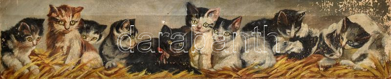 Jelzés nélkül: Kiscicák. Olaj, vászon, sérült. 19x92 cm