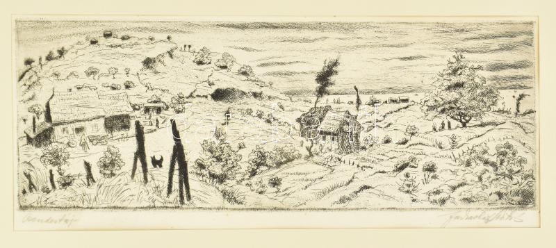 Farkasházy Miklós (1895-1964): Csendes táj. Rézkarc, papír. Jelzett. 14x36 cm