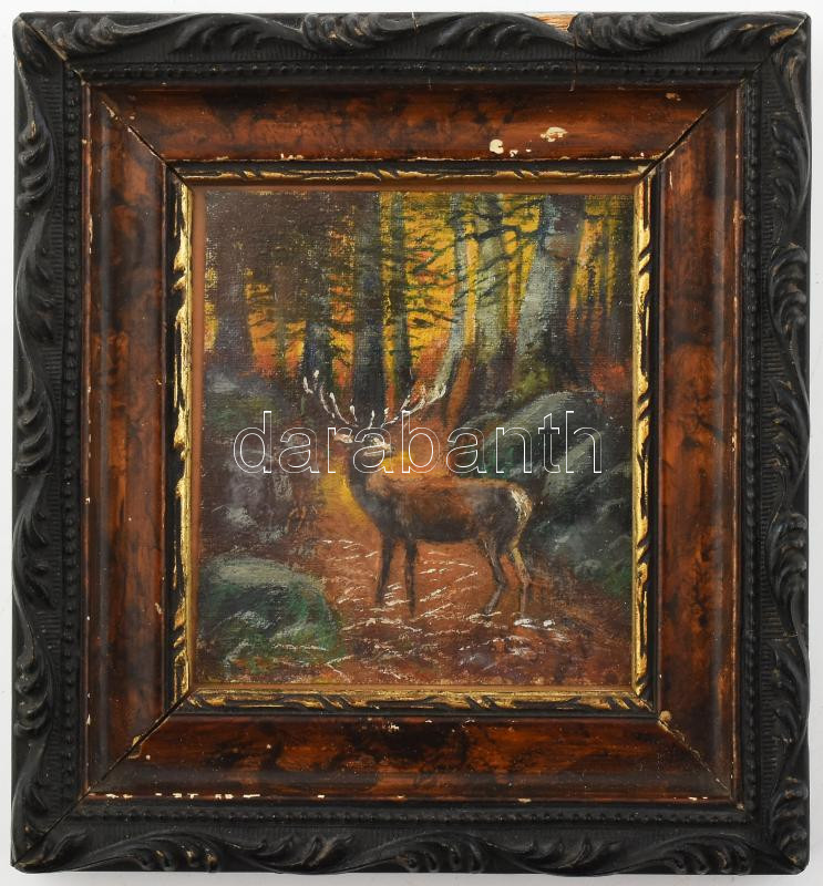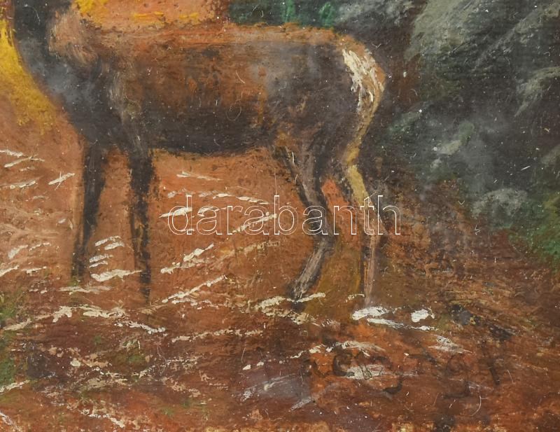 Haeryng Pál (?-?), működött feltehetően a XX. sz. első felében: Szarvas. Olaj, vászon, jelezve jobbra lent, 10x9 cm. Üvegezett fakeretben.