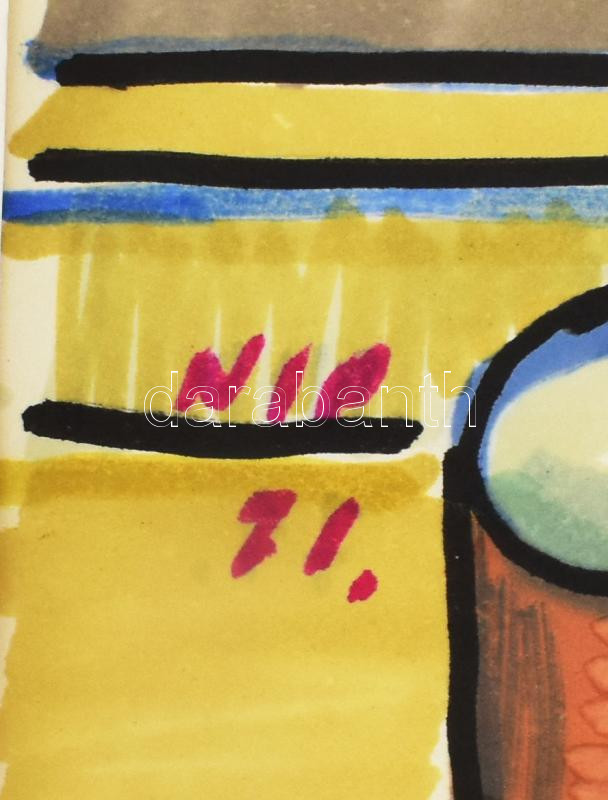Description: Nolipa István Pál (1907-1986): Kilátás csendélettel (Pesterzsébet?), 1971. Színes tus, papír. Jelezve balra lent. Paszpartuban, paszpartun Magyar Nemzeti Galéria kiviteli bélyegzővel. 28x23 cm