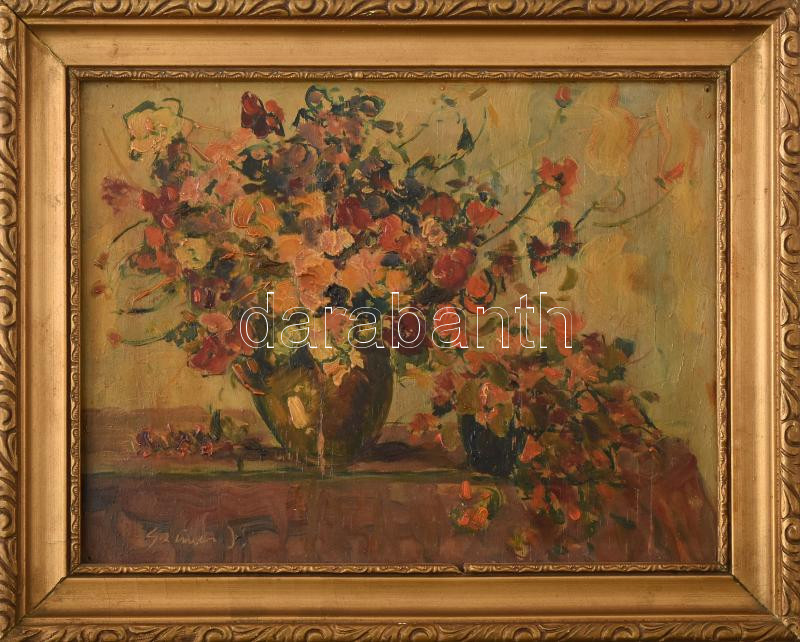 Szimon Jenő (1902-1978): Csendélet szirmokkal. Olaj, fa. Jelzett. Deko...