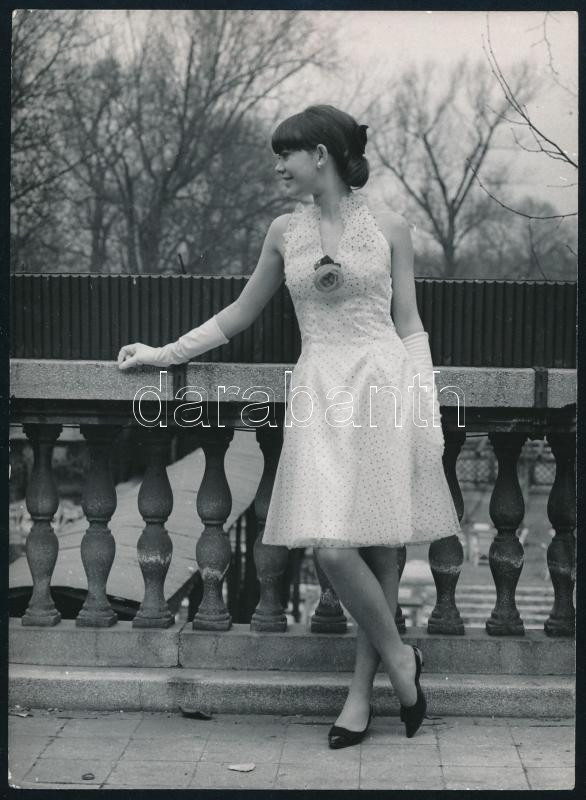 1966 Modell Rotschild Klára által tervezett ruhában, sajtófotó, 18×13 ...