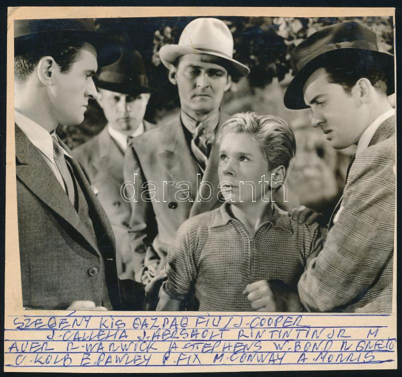 cca 1939 előtti felvétel, ,,Szegény kis gazdag fiú" című amerikai film egy jelenete, 1 db vintage produkciós filmfotó, ezüst zselatinos fotópapíron, Pánczél György (1920-?) filmtörténész hagyatékából (film- és színházifotó-gyűjteményéből), rajzlapra felragasztva, saját kézírásával kiegészítve, a használatból eredő - esetleges - kisebb hibákkal, 14,8x19 cm