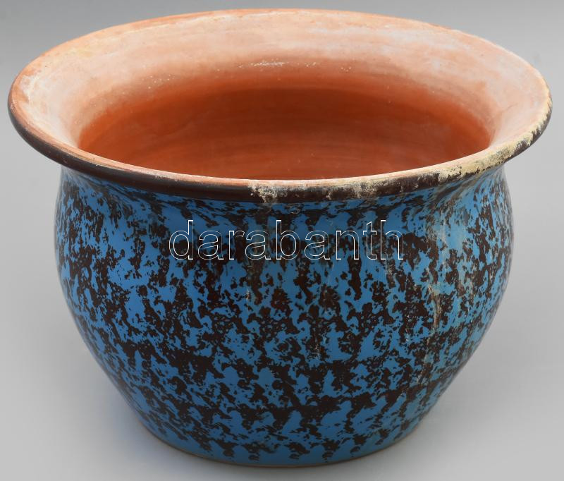 Kékmázas kerámia kaspó, jelzéssel, d: 22 cm, m: 14,5 cm