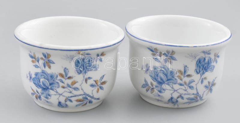 2 darab antik komacsésze, vastag anyagú, kék virágmintával, kopással, ...