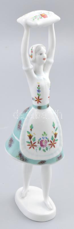 Hollóházi párnát kirázó lány. Jelzett, sérülésmentes, m: 8,5 cm