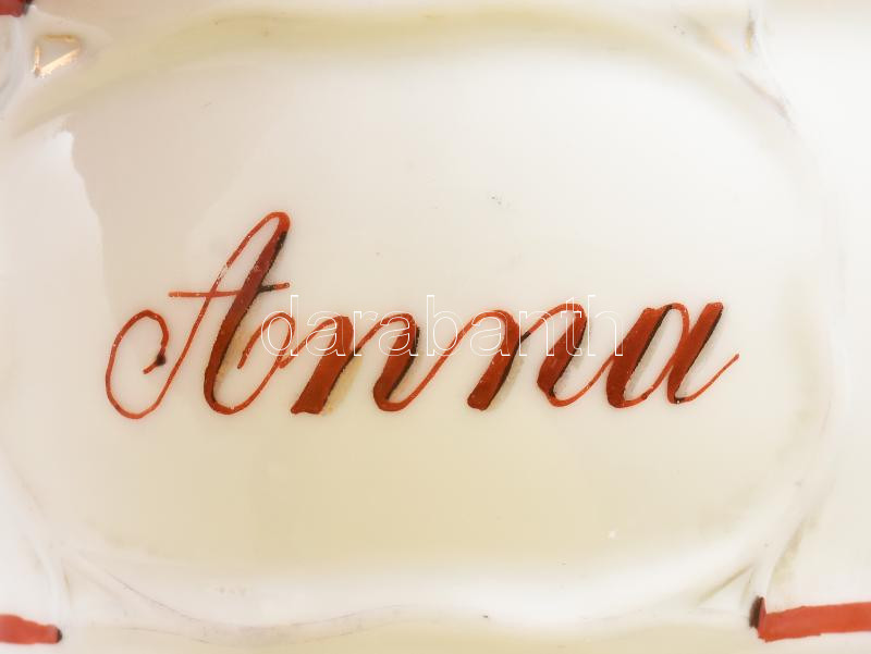 Rerrich F(erenc) Budapest kereskedői jelzéssel ellátott porcelán bögre "Anna" felirattal, repedéssel, m: 8,5 cm