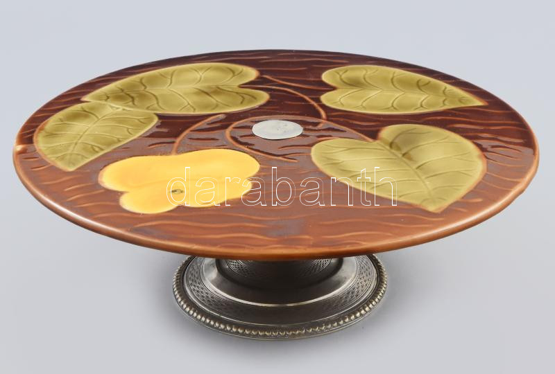 Sarreguemines mázas fajansz talpas kínáló fém talpazattal. Jelzéssel, ...