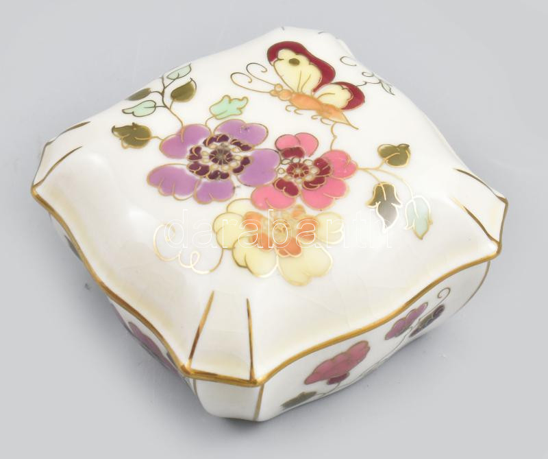 Zsolnay virág mintás ékszeres dobozka. Kézzel festett, jelzett, minimá...