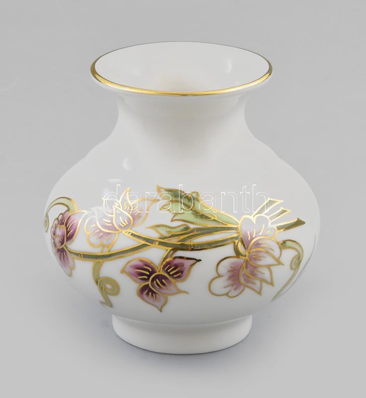 Zsolnay virágos váza. Kézzel festett, jelzett, hibátlan d: 9 cm, m: 9 ...
