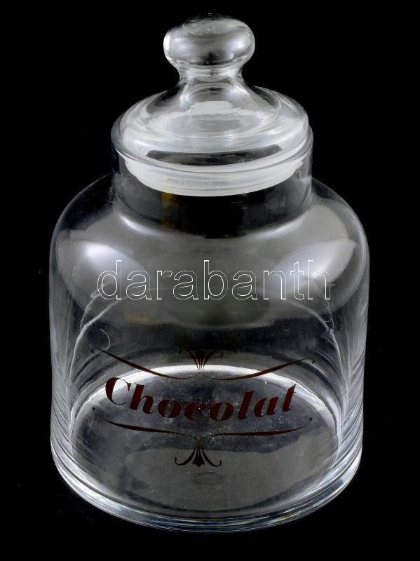 Francia csokoládékínáló üveg, hibátlan, d: 16,5 cm, m: 25 cm