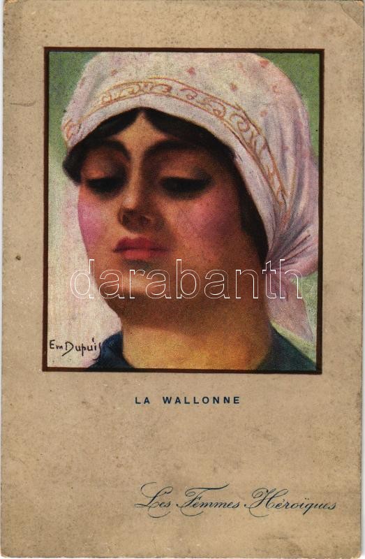 La Wallonne / French lady art postcard, Walloon lady. Les Femmes Heroiques. Visé Paris No. 42. s: Em. Dupuis (EK)