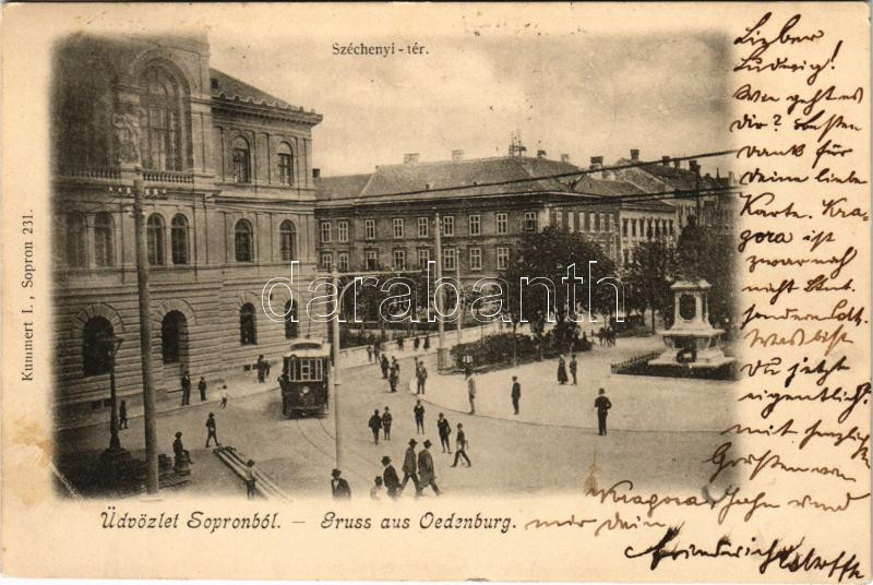 1902 Sopron, Széchenyi tér, villamos. Kummert L. kiadása (EK)