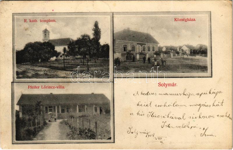 1908 Solymár, Római katolikus templom, Községháza, Pfeifer Lőrincz vil...