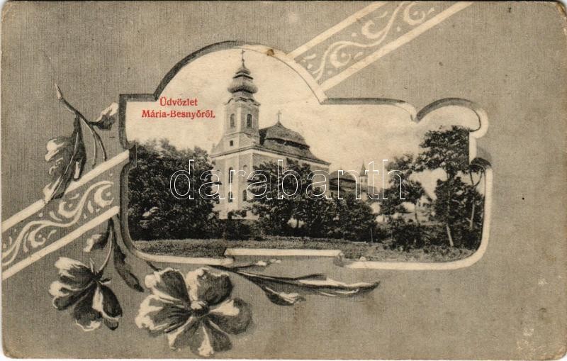 1912 Máriabesnyő (Gödöllő), kegytemplom. Floral (kopott sarkak / worn ...