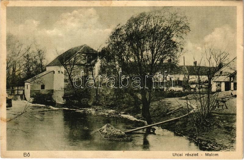 1935 Bő (Sárvár), utca és malom (gyűrődések / creases)