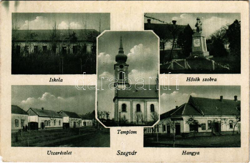 1948 Szegvár, iskola, templom, utca, Hősök szobra, Hangya szövetkezet ...