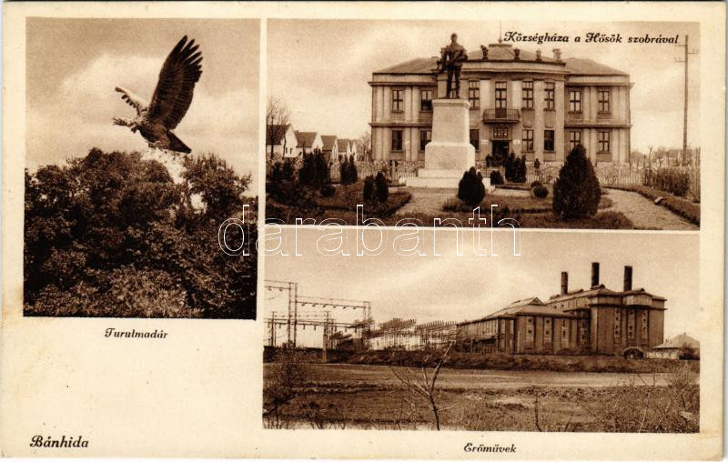 Bánhida, Turulmadár, Erőművek, Községháza a Hősök szobrával