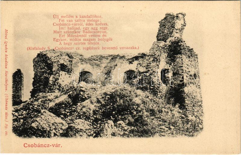 Csobánc, vár, Kisfaludy S. "Csobánc" c. regéjének bevezető versszaka. Mérei Ignác 89. (Rb)