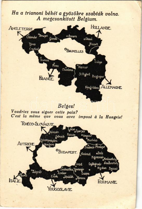 Ha a trianoni békét a győzőkre szabták volna. A megcsonkított Belgium.... https://www.darabanth.com/en/451-Online-auction/451.0/Postcards/Irredenta~2000090/Ha-a-trianoni-beket-a-gyozokre-szabtak-volna-A-megcsonkitott-Belgium-Kiadja-a-Magyar-Nemzeti~II3002014