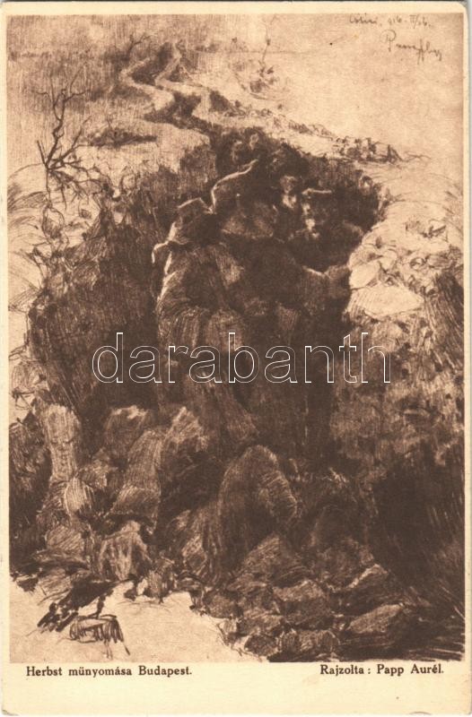 Description: 1921 A legnehezebb akadály előtt. A m. kir. debreceni 3. honvéd gyalogezred tulajdona / WWI Austro-Hungarian K.u.K. military art postcard s: Papp Aurél (EK)