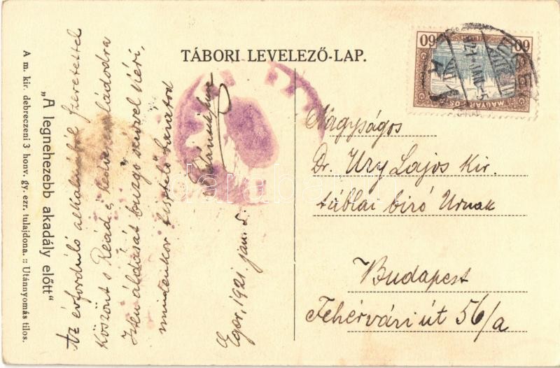 1921 A legnehezebb akadály előtt. A m. kir. debreceni 3. honvéd gyalog... https://www.darabanth.com/en/451-Online-auction/451.0/Postcards/Militaria~2000093/1921-A-legnehezebb-akadaly-elott-A-m-kir-debreceni-3-honved-gyalogezred-tulajdona-WWI-Austr~II2372218