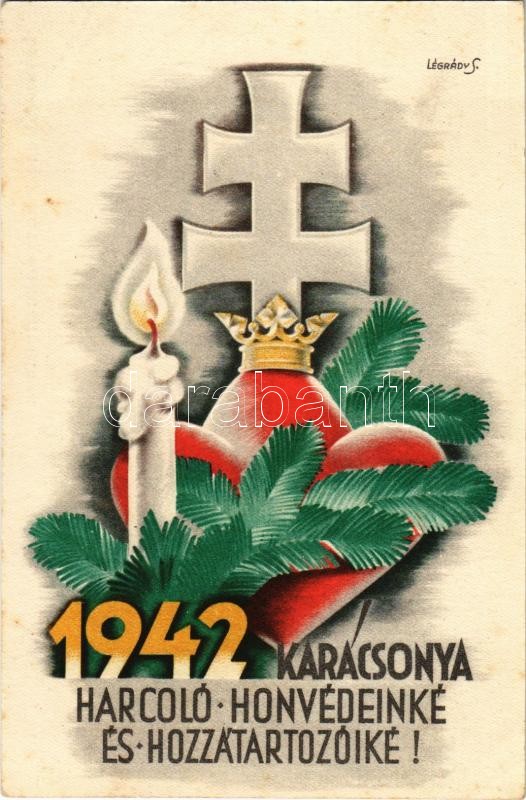 Description: 1942 Karácsonya Harcoló honvédeinké és hozzátartozóiké, Leventeifjúság honvédkarácsonya, Kolozsváry Béla / WWII Hungarian military Christmas greeting s: Légrády S. (EB)