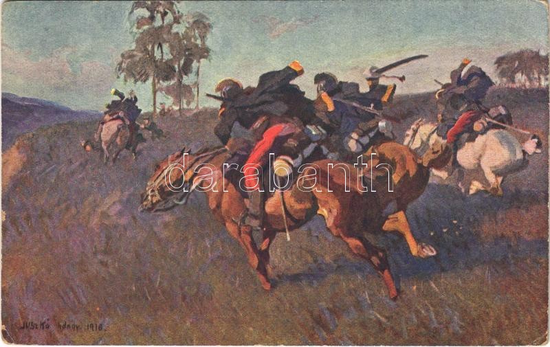 Bajban a pajtás / Kamerad in Gefahr / WWI Austro-Hungarian K.u.K. military art postcard s: Juszkó Béla (fl)
