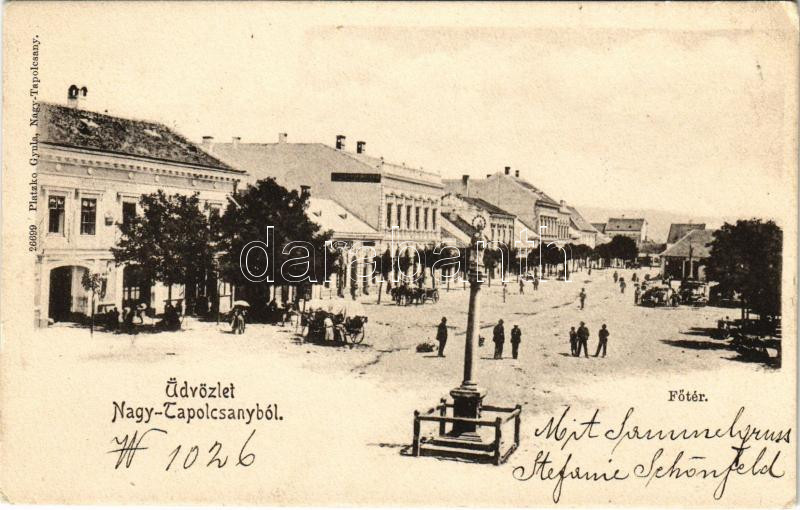 1901 Nagytapolcsány, Topolcany; Fő tér, üzletek, piac. Platzko Gyula k...