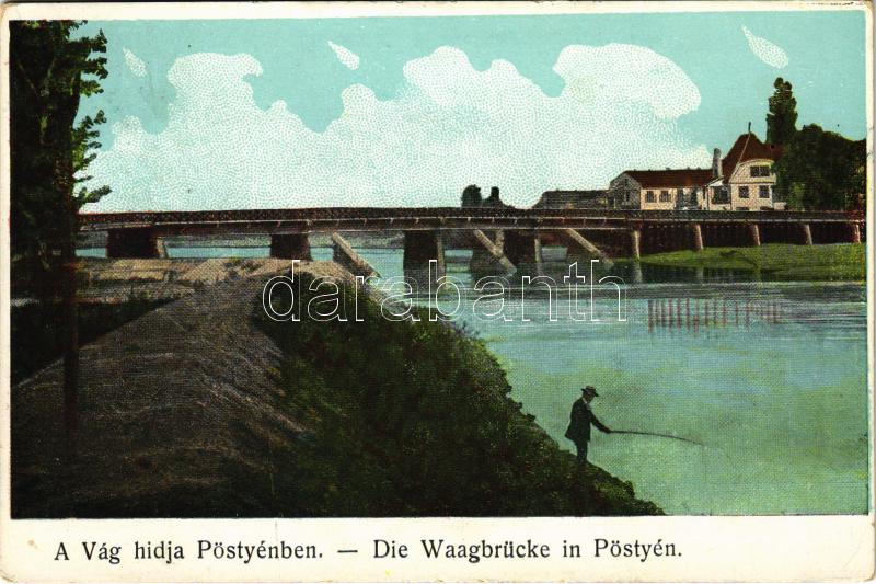 1915 Pöstyén, Piestany; Vág hídja. Gipsz H. kiadása / Die Waagbrücke /...