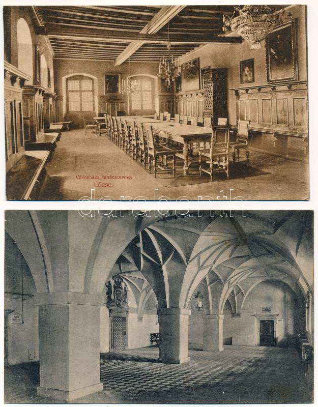 Lőcse, Levoca; Városháza tanácsterme, tornác / town hall - 2 db régi képeslap / 2 pre-1945 postcards