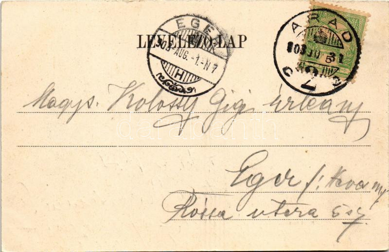 Description: 1903 Arad, Nyári színház, Nemzeti színház, Zilahy Gyula igazgató. Bloch H. kiadása / summer theatre, national theatre, theatre director. Art Nouveau, floral