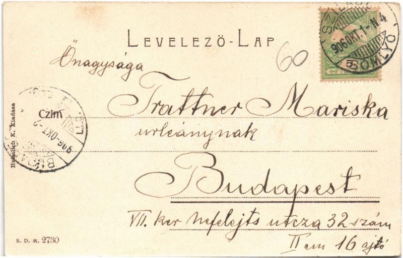 1906 Szilágysomlyó, Simleu Silvaniei; Megyeház utca, dohányáruda, Lázá...