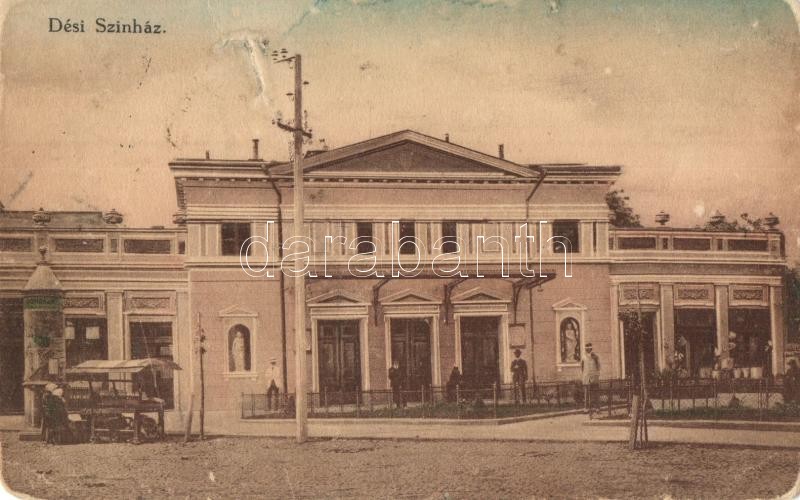1917 Dés, Dej; színház, utcai árus, hirdetőoszlop / theatre, street ve...