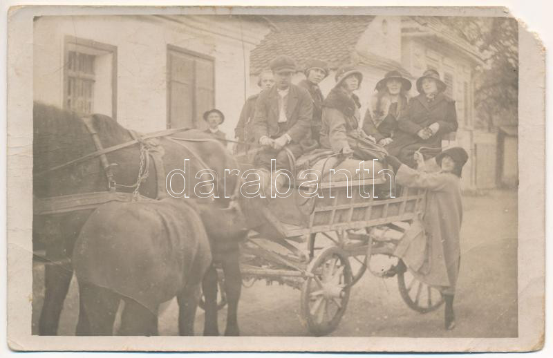 1922 Pürkerec, Purcareni; csoportkép a lovasszekéren / group photo on ...