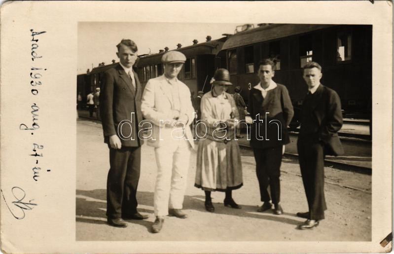 1930 Arad, csoportkép a vasútállomáson, vonat / railway station. photo...
