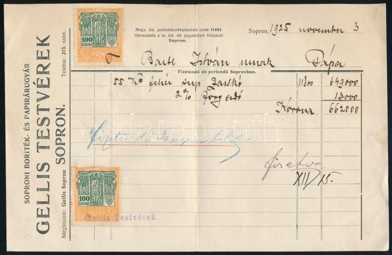https://www.darabanth.com/en/452-Online-auction/452.0/Art-and-other-collectibles/Advertisement~1000001/1925-Gellis-Testverek-Soproni-Boritek-es-Papirarugyar-fejleces-szamla~II3013035