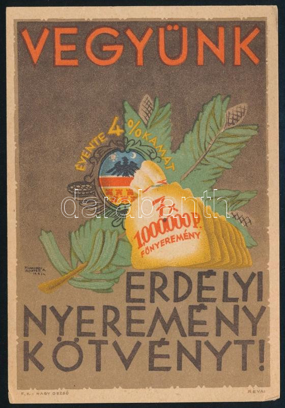 1941 "Vegyünk erdélyi nyereménykötvényt!" reklámcédula, szign. Richter...