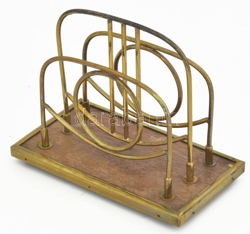 Art deco szalvétatartó, fém, fa, kopással, egyik csavarja pótolt, 15x8...