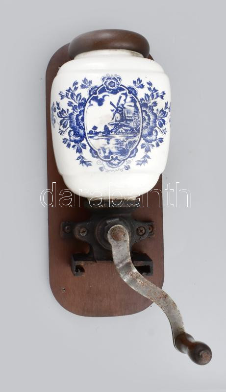 Fali kávédaráló. Festett porcelán testtel, fém résszel. 32 cm